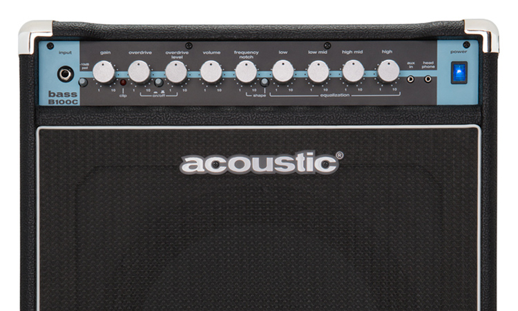 The Acoustic B100C C-Series 100-Watt Bass Combo Amp combines the best of all worlds: ideal for practice and rehearsal with outstanding stage-ready versatility. A custom-voiced 12″ ferrite speaker delivers classic Acoustic tone while its tilt-back cabinet design allows precise personal monitoring at rehearsals and on performance stages.